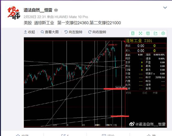 2020年2月12日道瓊斯指數歷史最高點29568.57到3月23日下跌至18218.65在短短的27個交易日內下跌了11349.82。我的微博里有具體的分析記錄。