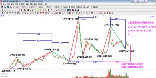 用一張老圖為例,講一下上證指數,2013年6月28是1849低點,到2020年6月運行8年周期,會不會同樣也是一個低點,6124高點時間是2007年10月,5178高點為2015年6月。高點到高點之間運行了92個月。下一個高點的時間為,2023年2月。