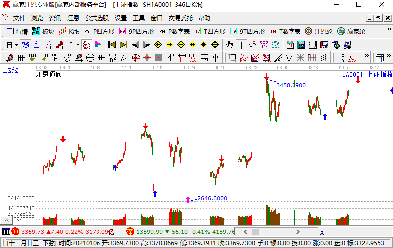 那么如何把控到頂部和底部呢?如何在趨勢轉(zhuǎn)折的時候做出對應(yīng)的操作來拿到最大利潤并且避免下跌所帶來的虧損呢?可以通過波浪理論研究結(jié)構(gòu)找到頂部和底部,也可以通過道氏理論研究趨勢來幫助自己找到相應(yīng)的趨勢拐點(diǎn),甚至是可以通過江恩理論研究時間周期來找到市場的頂部和底部,但是能做到這些的往往也都是市場中的高手,擁有著豐富的經(jīng)驗和專業(yè)技術(shù)。那么對于散戶來說如何判斷市場的頂部和底部呢?除了不斷學(xué)習(xí)專業(yè)知識之外,市場中也有一些智能的軟件來簡單的幫助散戶找到頂?shù)住?/p>