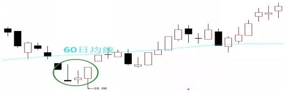 第四種空頭陷阱洗盤。當主力機構和散戶同時都看好某一只股票的中長線走勢的時候,主力機構肯定不愿意讓散戶坐轎。所以,在拉升前就采取極端技術破位手段以此來恐嚇散戶交出籌碼。比如,打壓股價破位60日均線造成散戶恐慌,主力就可以順勢將散戶恐慌中拋售的籌碼悉數吸納。股價停留在60日均線下方并不會太長時間,通常以一根大中陽線或者連續的陽線把股價拉回到60日均線上方。