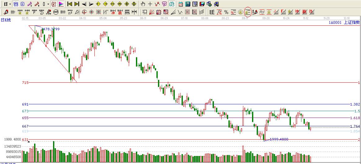 ★依據贏家江恩系統黃金價格延伸線提示:大盤在支撐點位1.854位置2041附近支撐反彈,關注上方1.764位置2063的壓力。