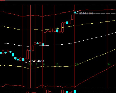 指數(shù)4號大幅高開觸及極反通道紅色外軌后震蕩回補缺口,自1949點算起費氏時間21天創(chuàng)出2296點新高,短周期圍繞黃色外軌線震蕩,參考?xì)v史數(shù)據(jù)得出紅色外軌線歷史觸碰次數(shù)較少,每次運行至此都會有調(diào)整,投資者結(jié)合極反通道各周期配合來制定計劃,短生命線支撐2245-2255,外軌線阻力2288-2294;