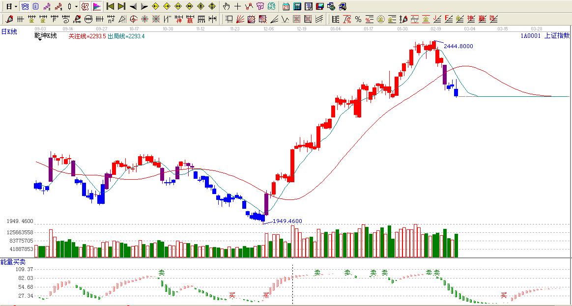 ☆依據贏家乾坤K線提示:大盤處于藍色區間,看空做空。