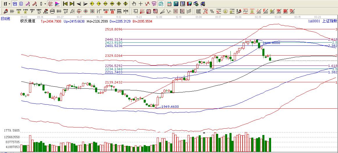 ★依據贏家江恩系統極反通道提示:大盤極反通道藍色外軌道線2426點附近壓力,極反通道生命線支撐2283點。大盤依然處于極反通道生命線上方看多。