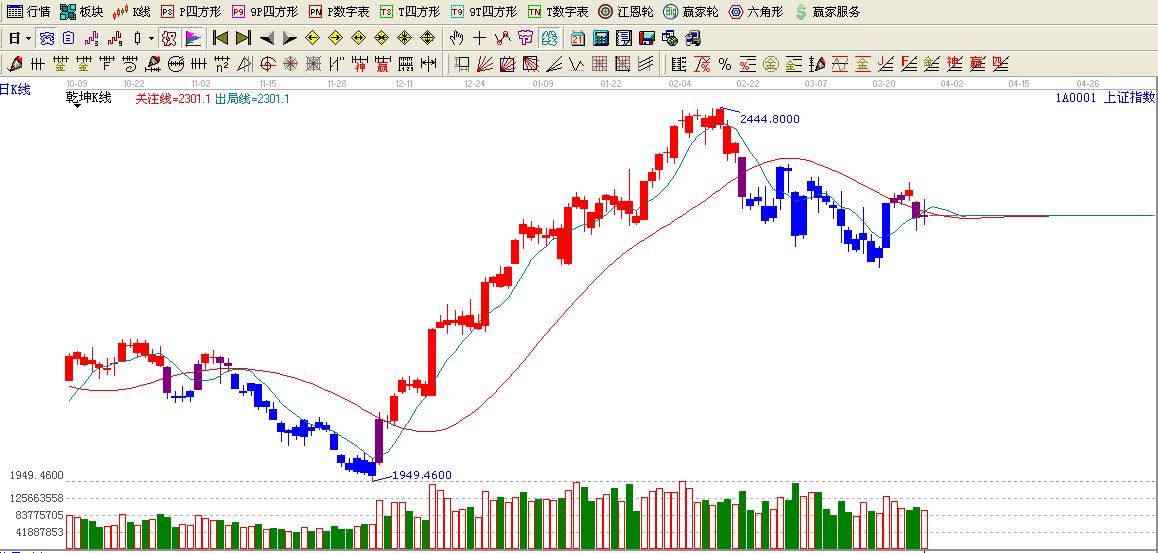 ☆依據贏家江恩系統極反通道提示:大盤在極反通道生命線2331下看空。