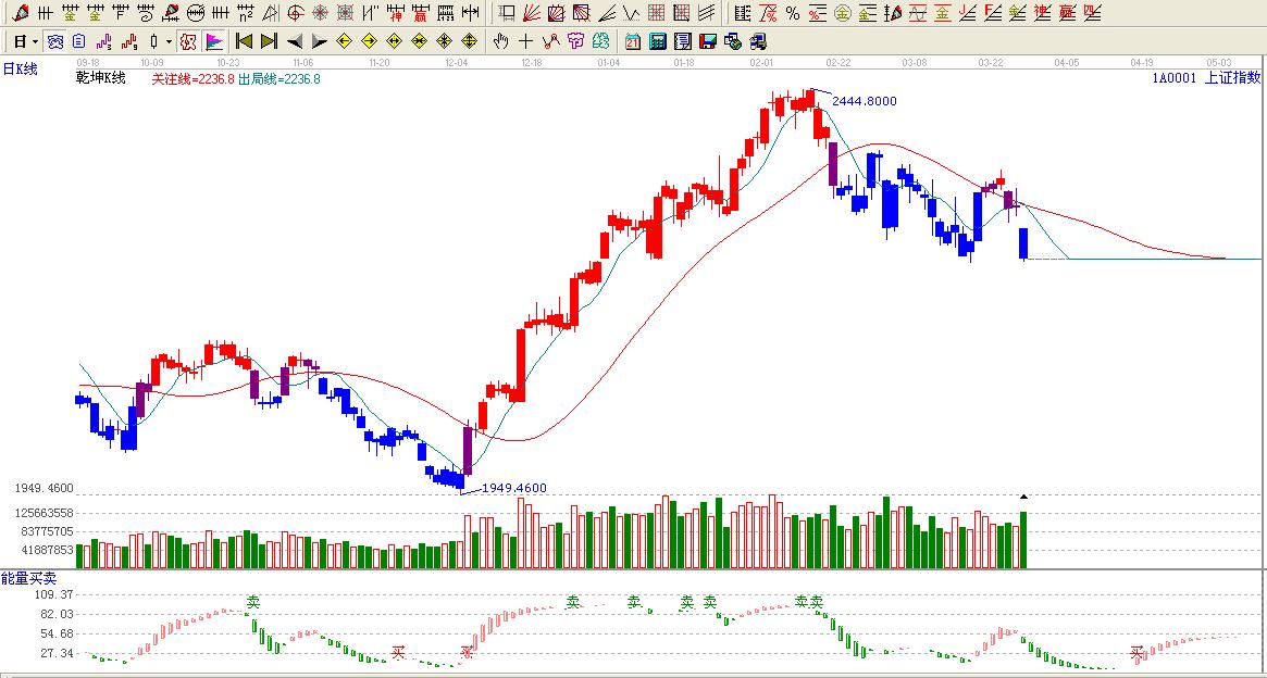 ☆依據贏家乾坤k提示:大盤紫色變為藍色,看空。