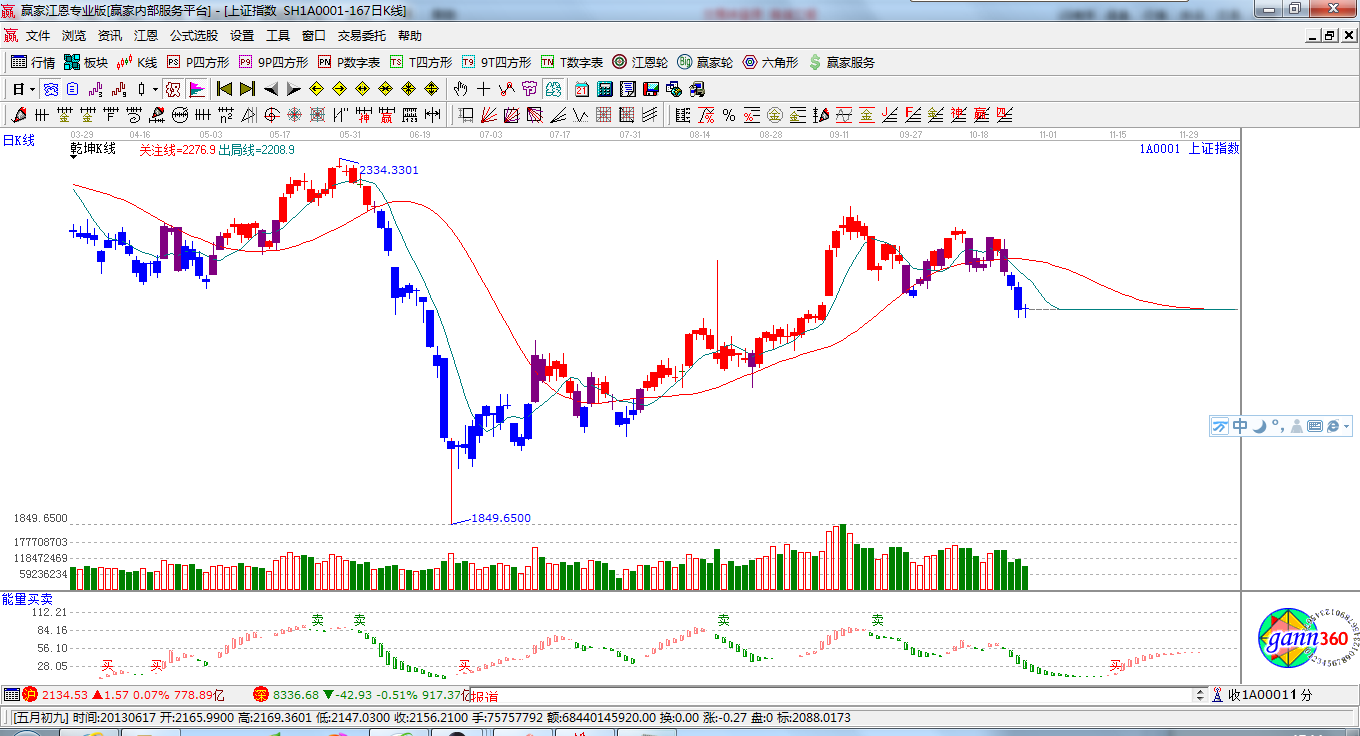 ★依據贏家江恩系統極反通道提示:MACD柱子如近兩日不在加長,則會對日線跌破生命線展開修復動作,整體策略以在生命線線下弱勢行情應對,以生命線的得失來調整倉位;