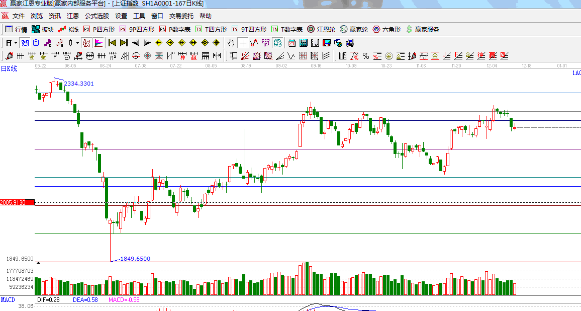 早盤滬深兩市小幅低開隨后圍繞2200點窄幅震蕩,臨逢年底各路資金的結算會影響市場的流動性,預計近期市場將圍繞江恩軟件極反通道生命線附近上下震蕩,波段思路對明年波段行情較看好,投資者可借助市場震蕩對部分品種進行逢低布局;今日盤面上互聯網、傳媒娛樂等板塊飆漲,金融、農業、鋼鐵等板塊表現低迷成交量萎縮。