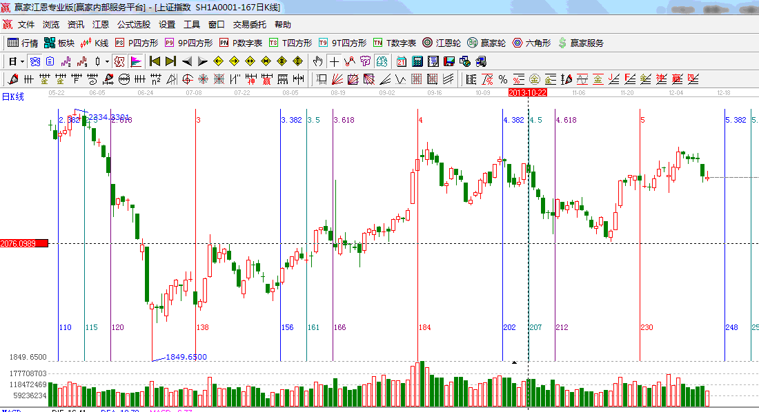 ★依據贏家江恩系統黃金時間周期線提示:17號為黃金分割的0.382的位置,重點觀察日線k線形態;