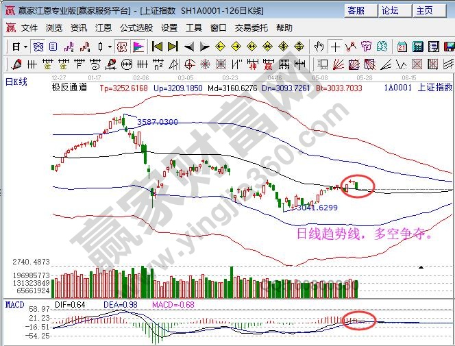 ★依據贏家江恩理論系統極反通道提示:滬指日K線、60分鐘收盤落在生命線3168處,短周期15、30進入弱勢通道,此線為波段多空線,線上運行波段看多,線下運行看空,圍繞此線上下震蕩時以觀望為主。