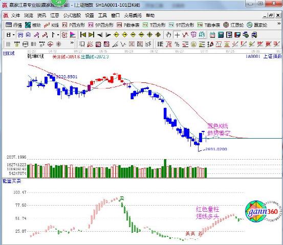 ☆依據贏家江恩理論系統(tǒng)乾坤K線提示:藍色K線,波段趨勢仍為空。